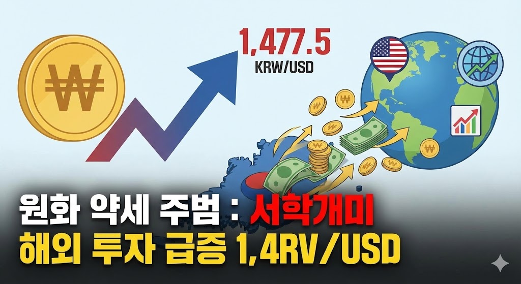 원/달러 환율이 1,477원까지 치솟은 진짜 이유는 한미 금리 격차가 아니었습니다. 한국은행은 국내 거주자의 막대한 **'해외 증권 투자'**를 주원인으로 지목했습니다.